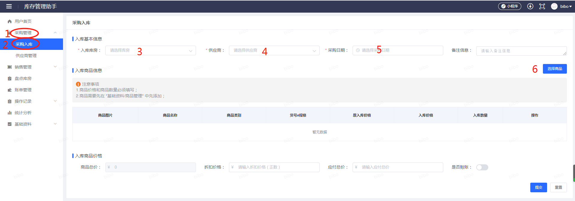 扫码入库,填写金额、数量即可提交