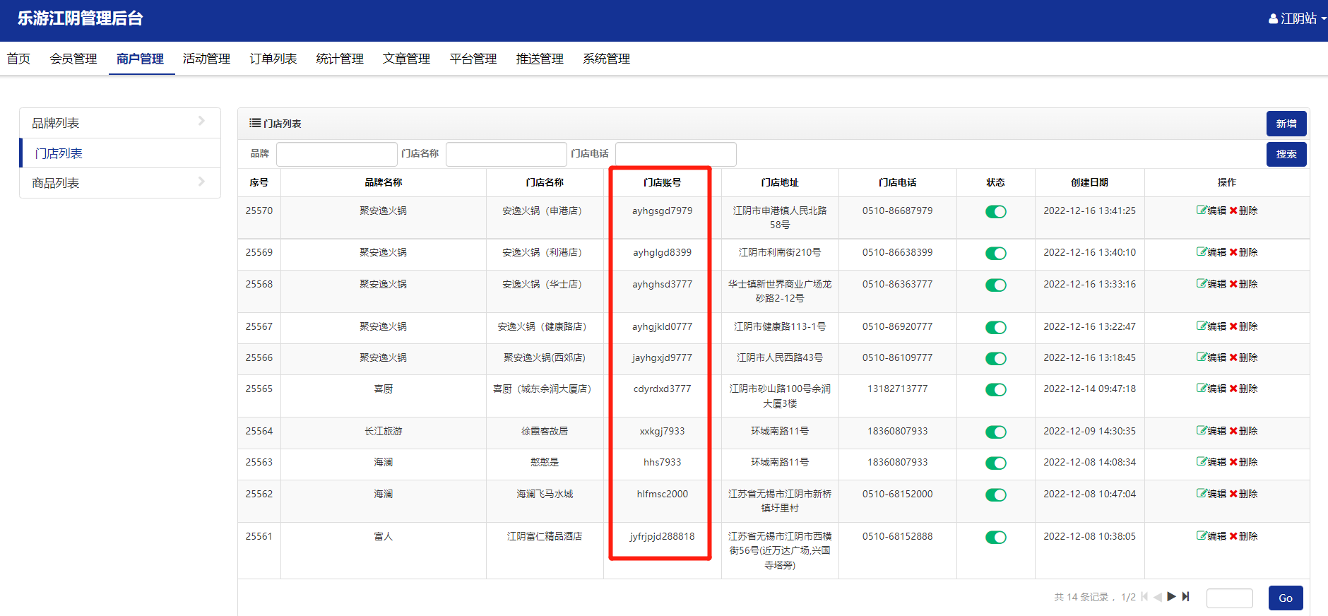 注:门店账号在商户管理---门店列表中获取