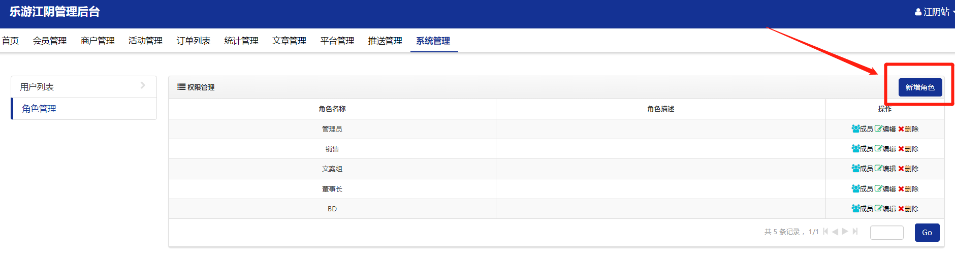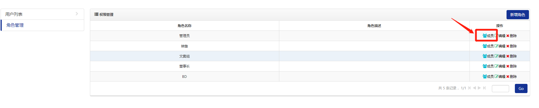 在用户管理中给每个组分配了组员后,可以在角色管理---成员中查看。也可以直接在角色管理---成员中直接分配组员
