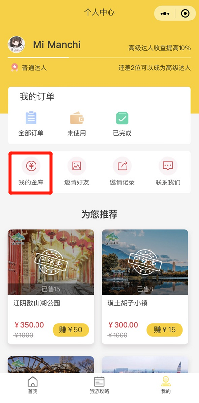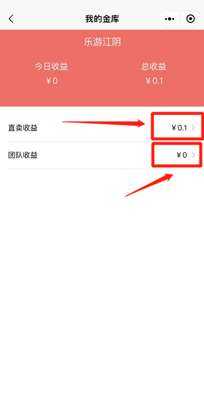我的---我的金库,查看 自己购买商品或下线购买商品后所拿到的返利。