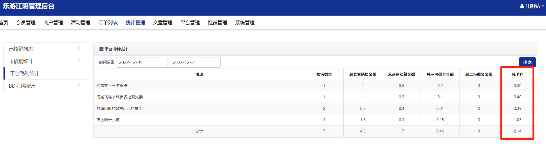 平台毛利统计