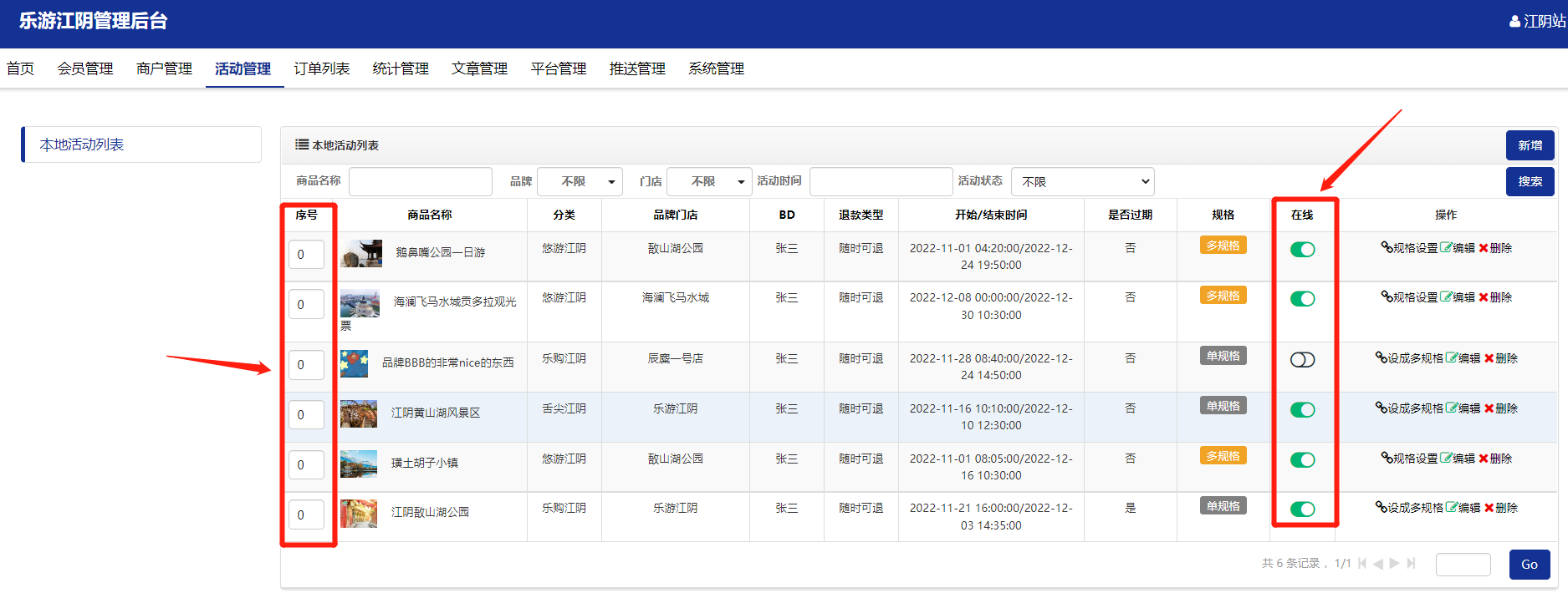 注2:列表前的序号可以控制在前台页面显示的先后顺序,0表示按创建时间默认排序