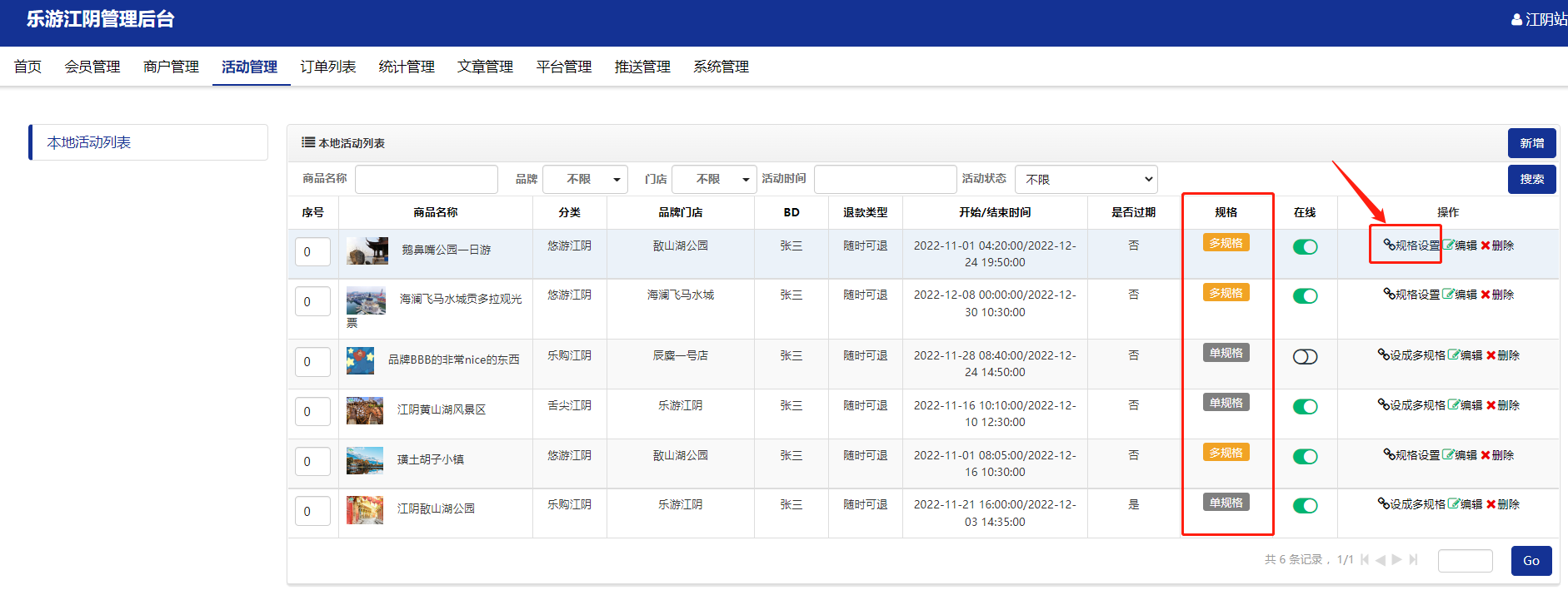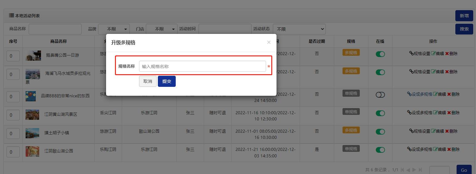 注:设置成多规格后,无法改为单规格,设置的第一个规格无法删除。