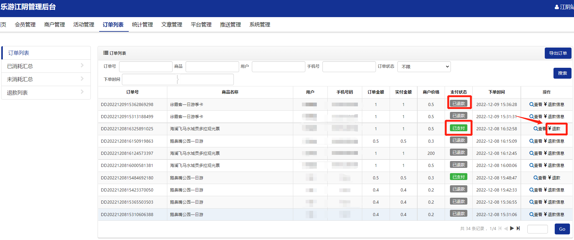 订单退款 可以分为从后台管理系统退款 和 用户从小程序中退款