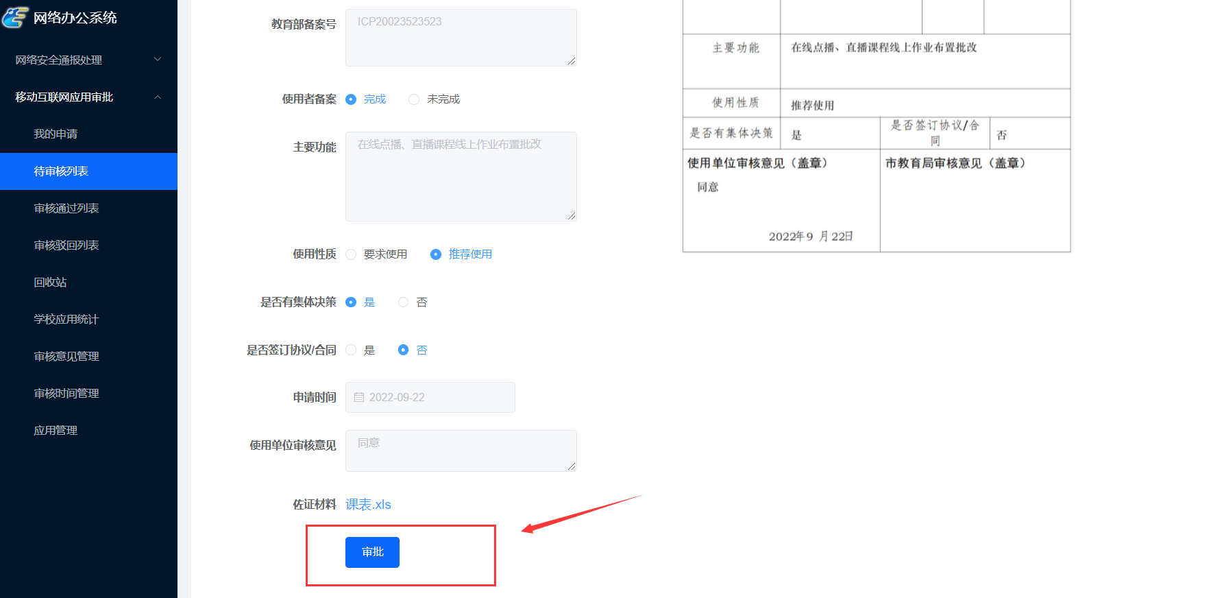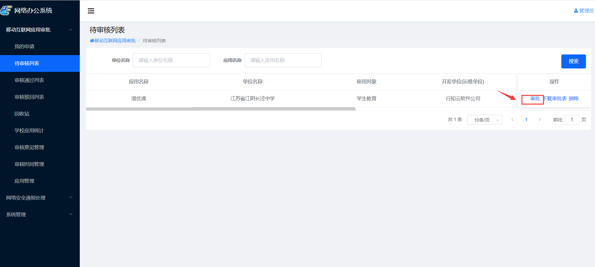 点开待审核列表,对学校提交的申请进行审核。