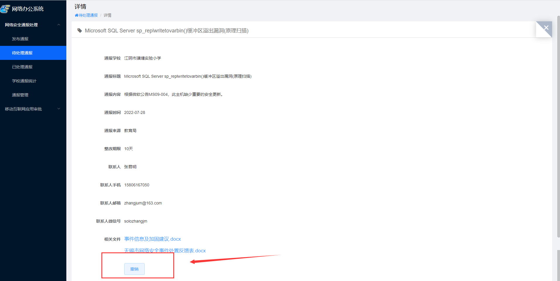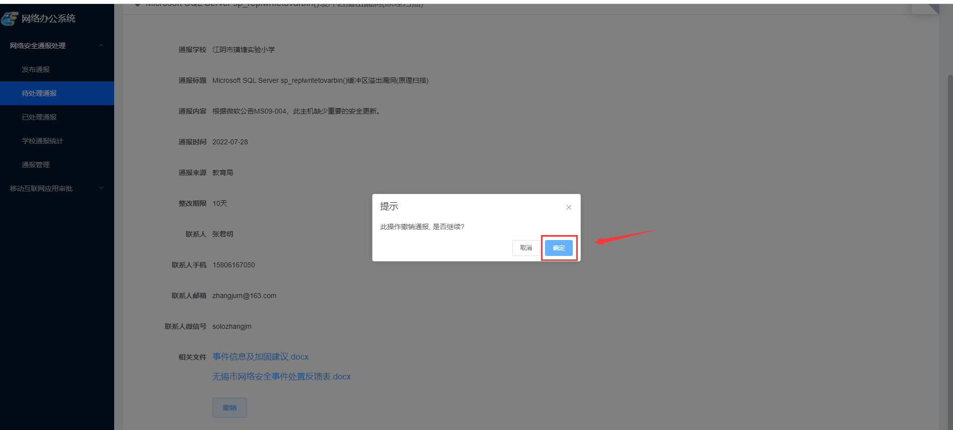 发布通报后,可以撤销该通报,后台会保留该条记录