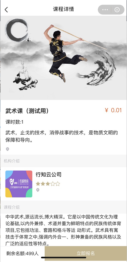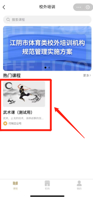课程信息查询课程发布后,学生家长可以在最江阴APP上查看。依次点击 最江阴APP首页--校外培训监管--即可查看已发布的课程点击课程,进入课程详情,查看课程的详细信息(任课教师,机构信息,报名人数,金额)