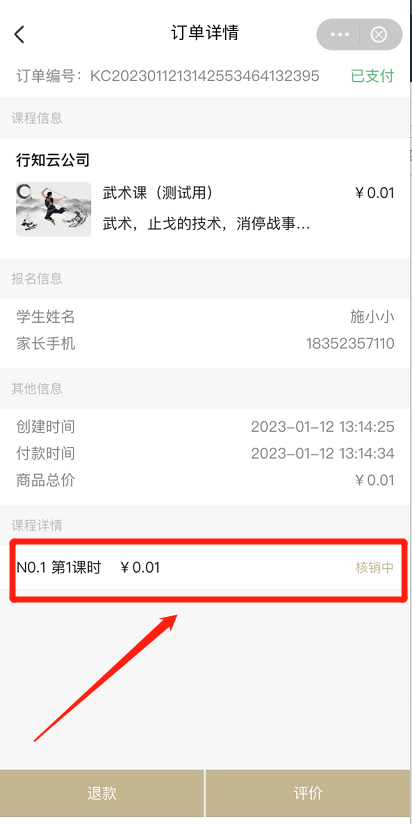 依次点击校外培训监管--我的--我的订单--订单详情,查看该订单的状态及课程核销进度。