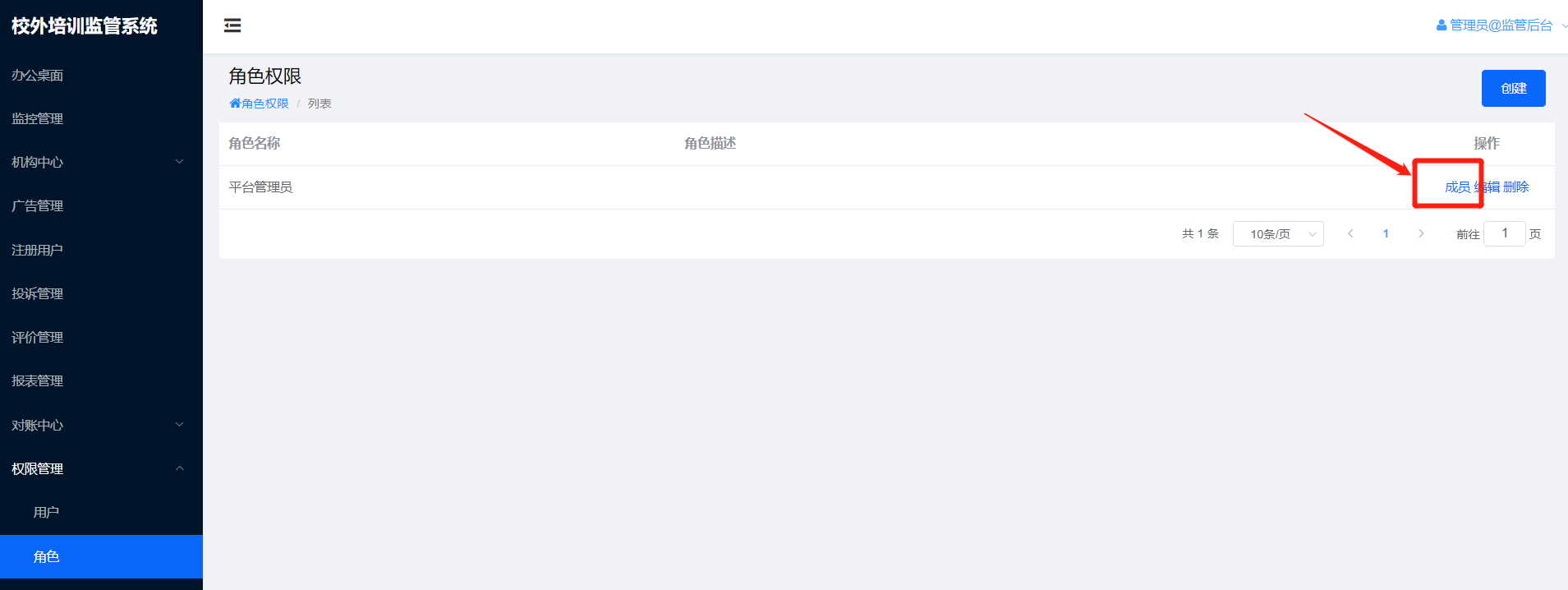 主管部门用户是本系统的主要管理者,主要包括培训机构资质初审(镇街)、复审(市局)、培训机构监控视频查看、接收培训机构办学预警消息、机构数据分析等功能。