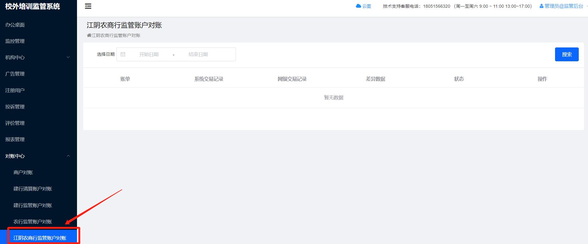 江阴农村商业银行监管账户对账