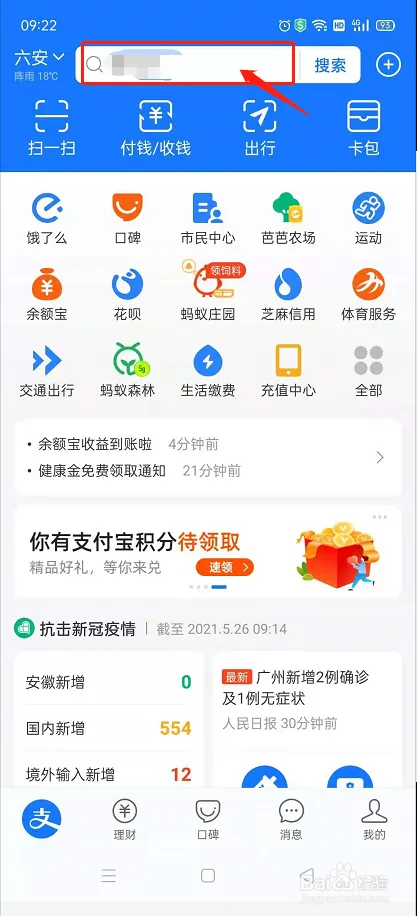 打开支付宝APP,点击搜索框,搜索 签约助手