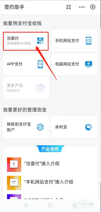 点击“当面付”