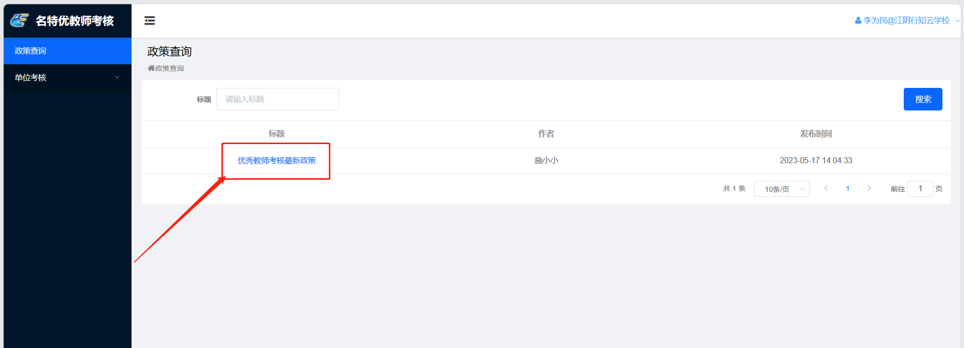 单位考核人员权限可见:政策查询、个人申报、单位考核。