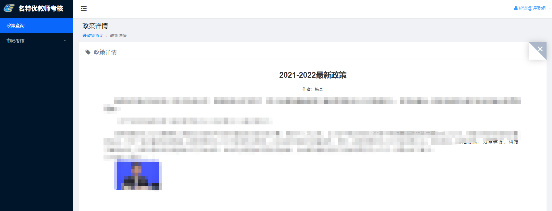 局评委权限可见:政策查询、市局考核。组长还会显示市局审批。