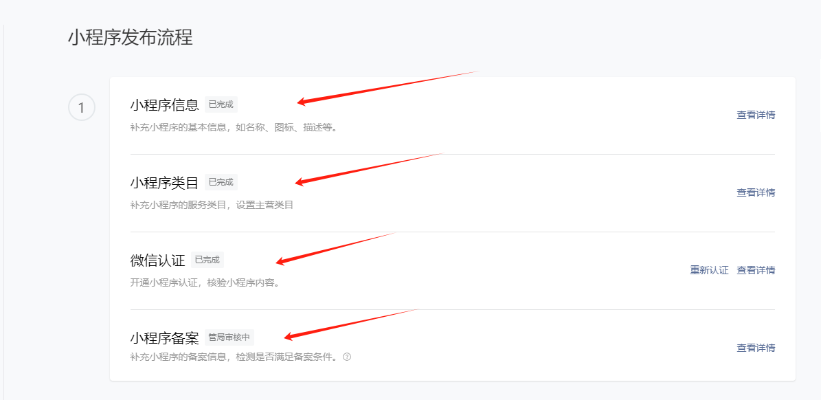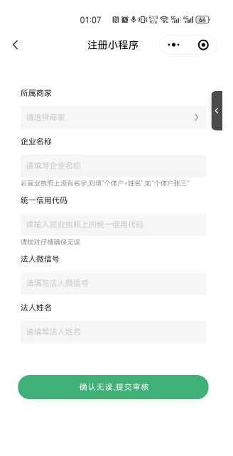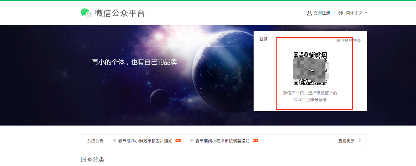 第四步:打开电脑浏览器登录小程序后台 https://mp.weixin.qq.com/(创始人只能扫码登录,所以需要准备一个备用手机或电脑), 完成小程序信息类目、官方认证以及政府管局备案。