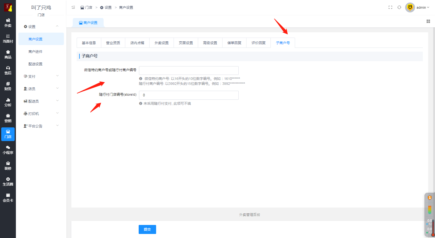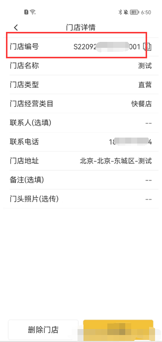 添加门店成功后,点击进入门店,获取的门店编号填写在外卖后台即可
