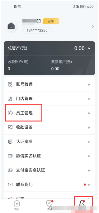 点击员工管理,添加门店的员工(即是商户/档口下的店员或管理员)