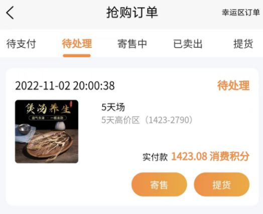2、会员选择委托寄售,商品重复进入抢购区,等待下一轮的活动。