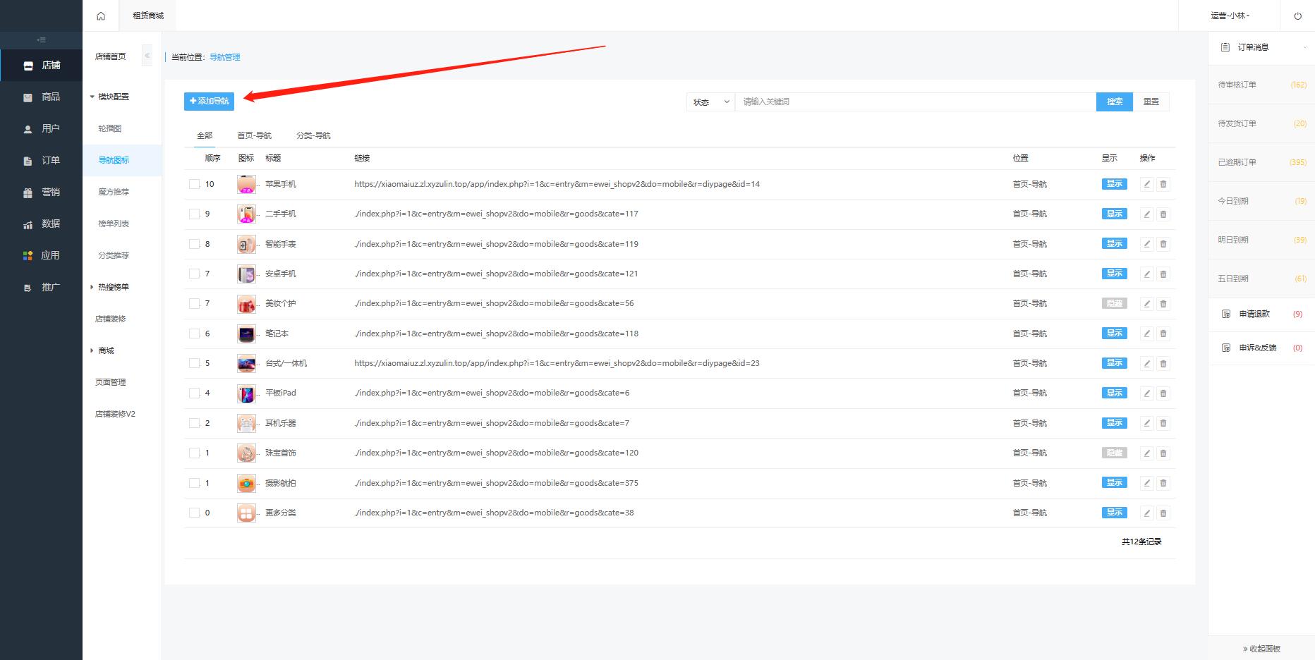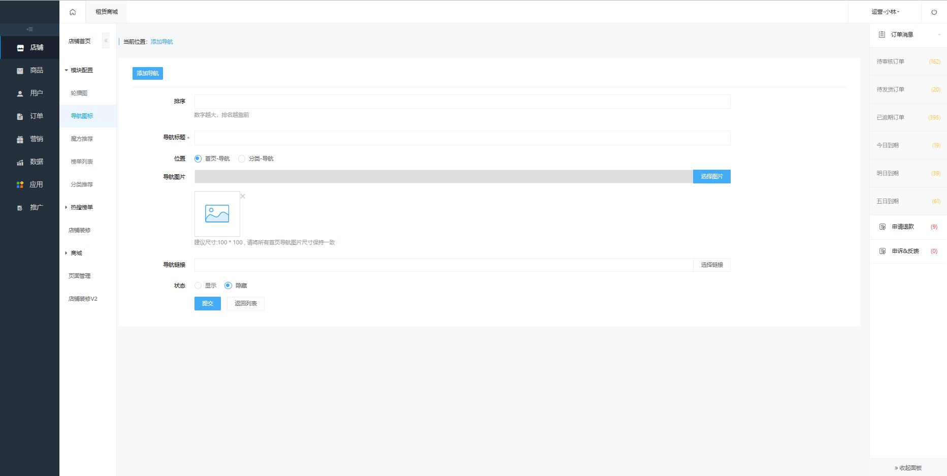 1. 选择“店铺”--选择“导航图片”--添加导航