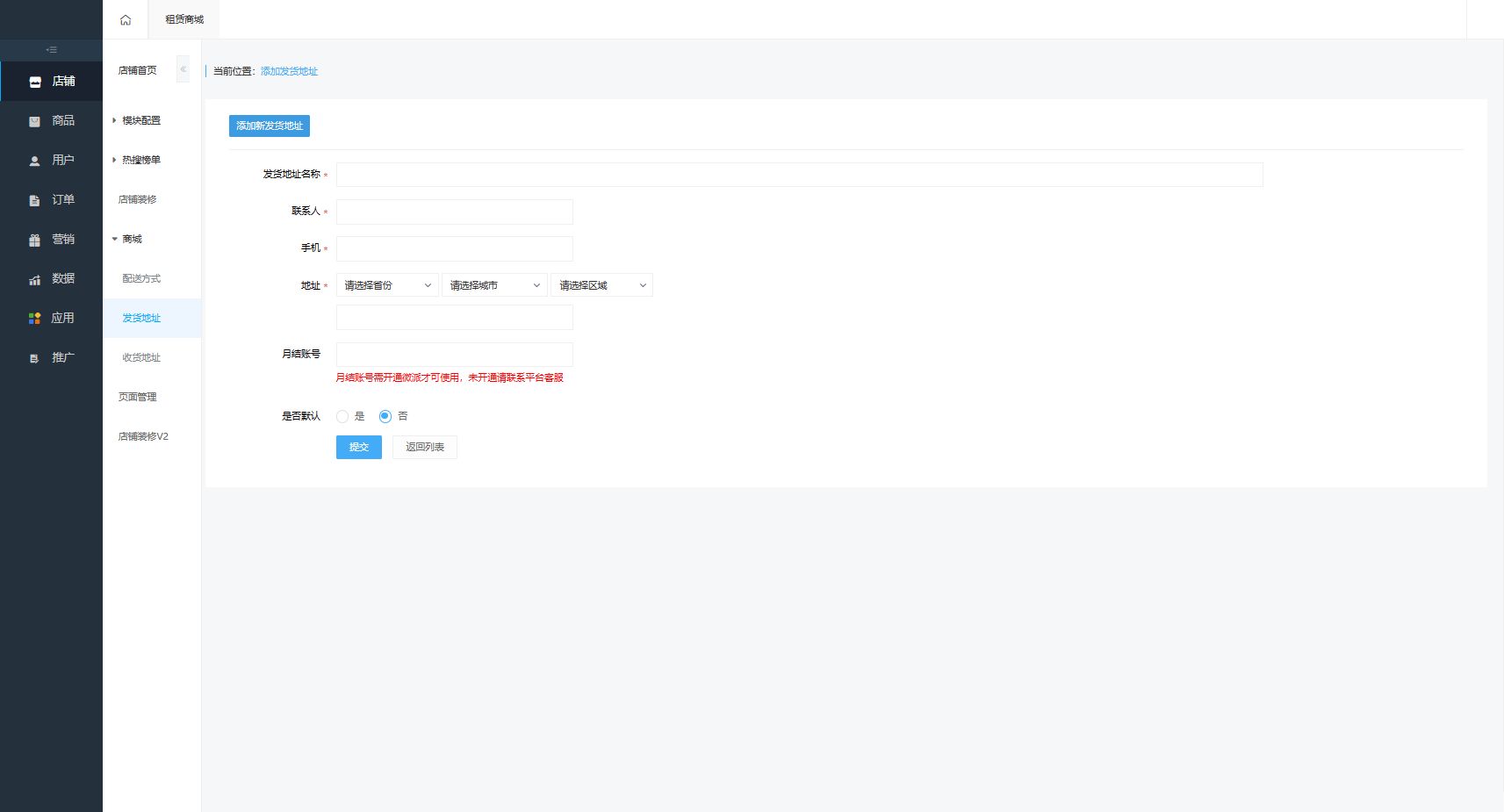 添加发货地址