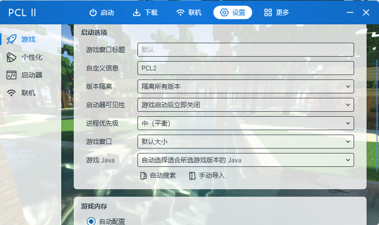 在安装好`java`后你可以使用自动搜索功能,然后等待搜索完成后,选择`java17`即可启动游戏啦!