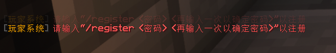 ### 注册账号 新手玩家第一次进入服务器之后会显示要求你注册账号  例如/reg 123456 123456 ### 登陆账号 已经注册过的玩家在进入服务器时需要进行登陆