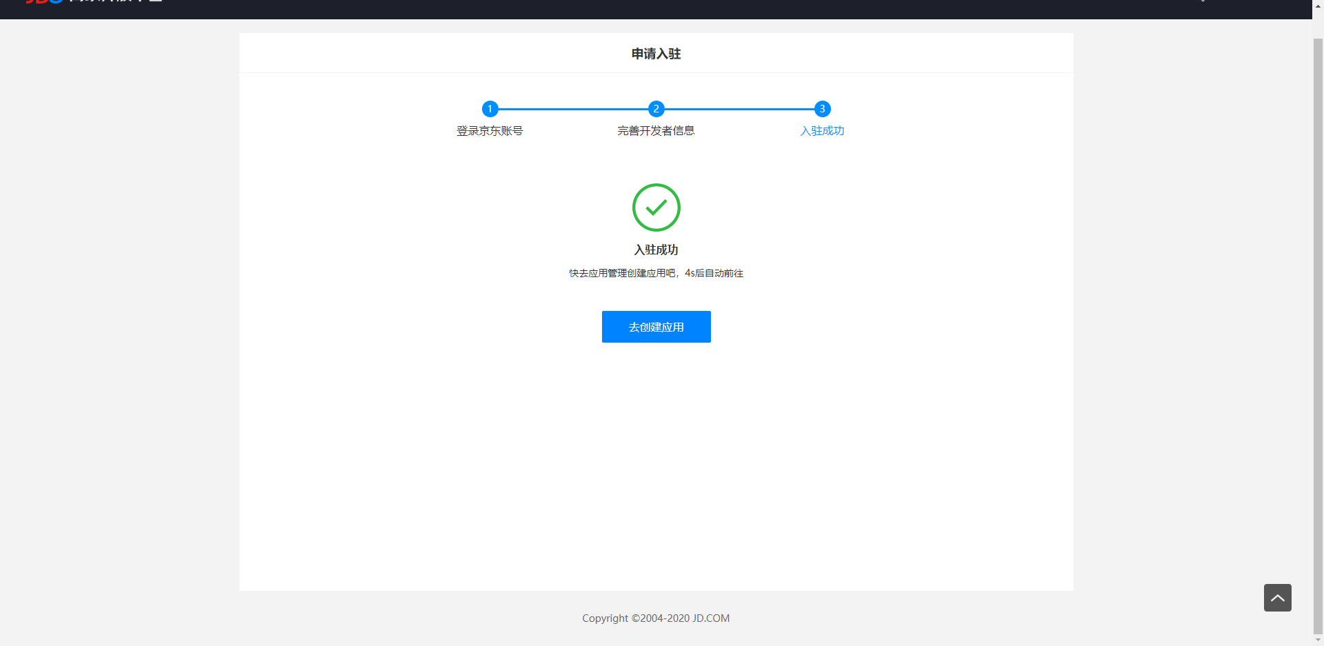 3.开发者信息完善完毕后,可开始创建开发者应用