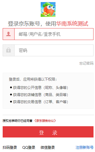 (3)如果京东用户允许{开发者应用}获取自己京东账户的隐私数据(如商品,订单等),需在此授权页面完成登录授权.