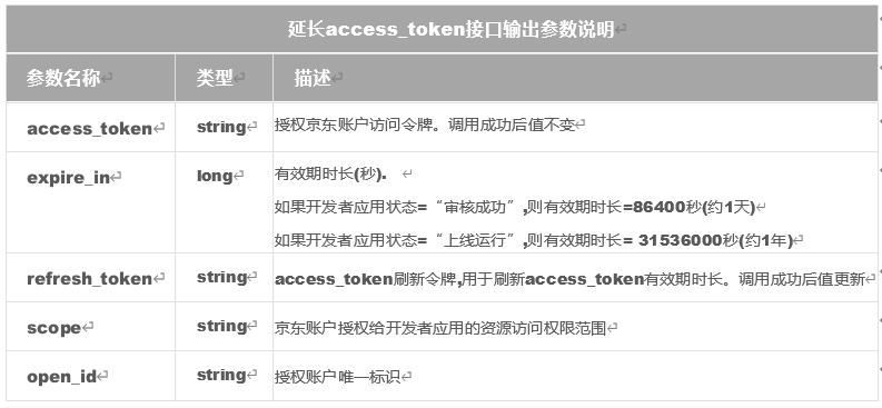 通过上述两种流程,获取了access_token以及refresh_token,但是一般来讲,access_token都有一定的有效期(有效期请参考第七步流程中expire_in参数),在刷新有效时长内必须通过 refresh_token调用API 来延迟 access_token的时长。根据刷新令牌获取访问令牌参数如下: