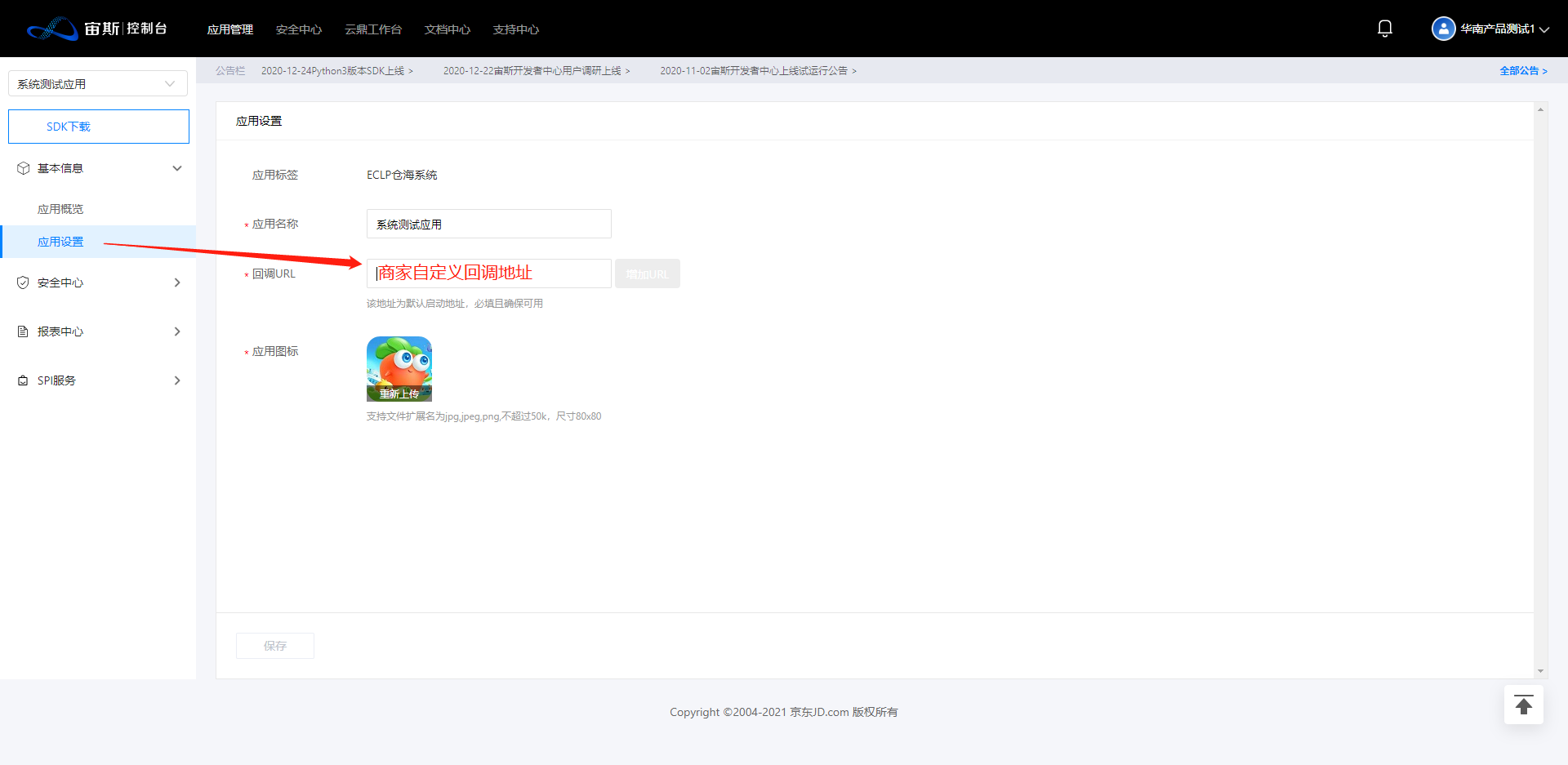 (1)开发者先进入“jos开放平台-控制台-应用管理-应用设置”中设置“回调地址”